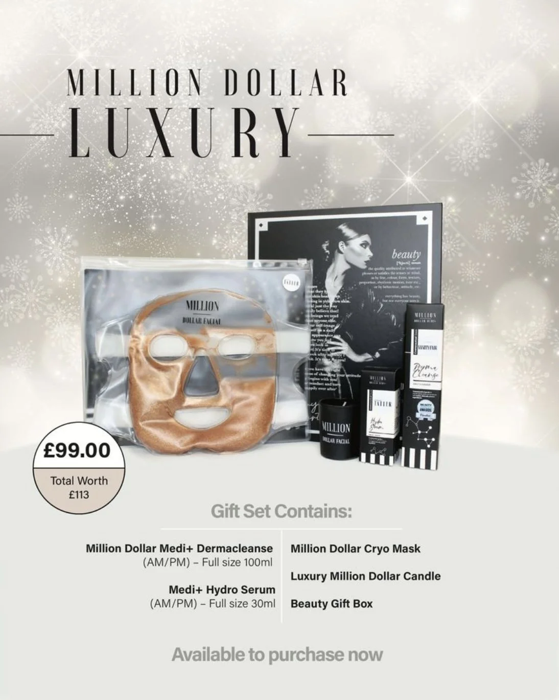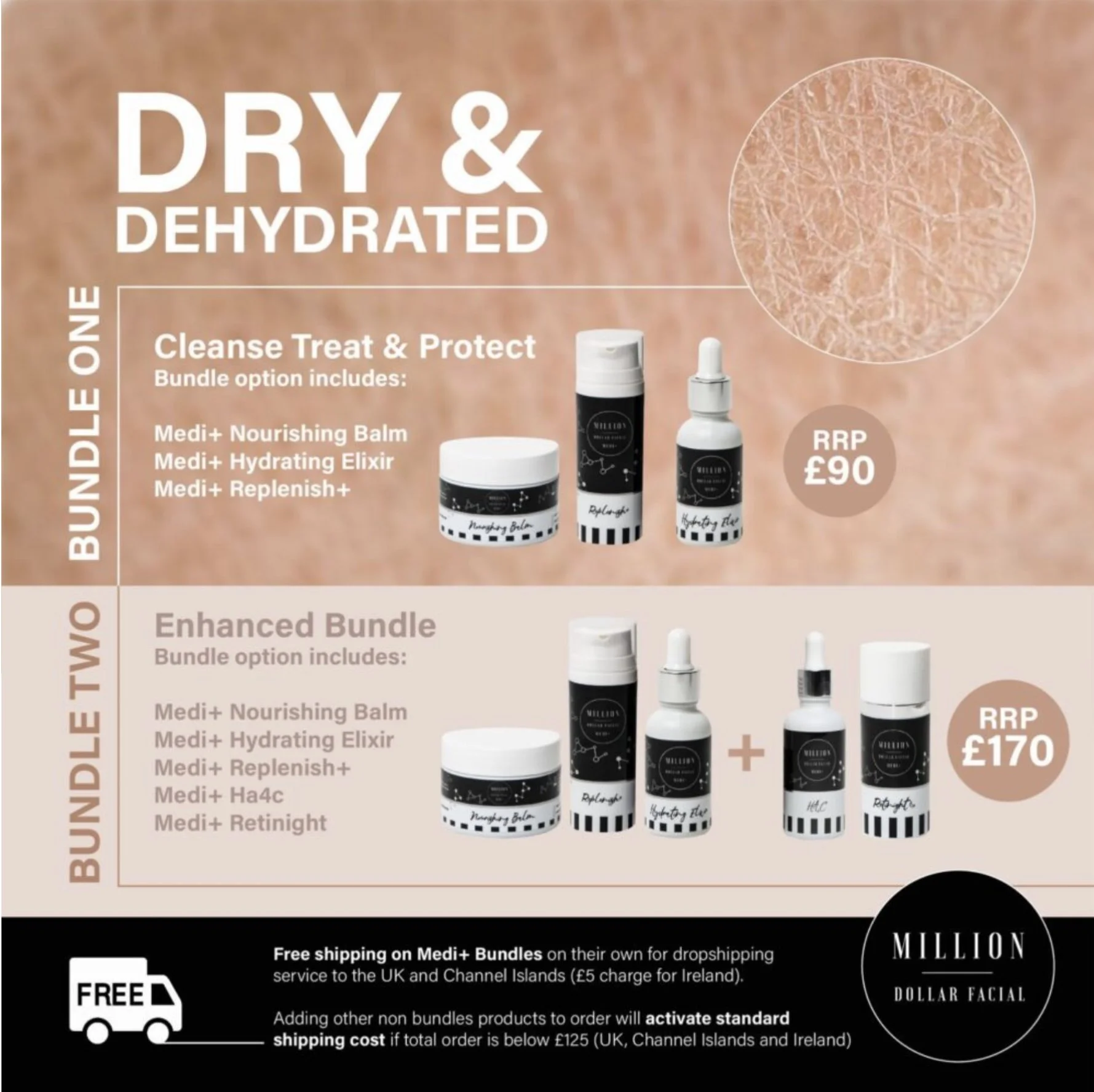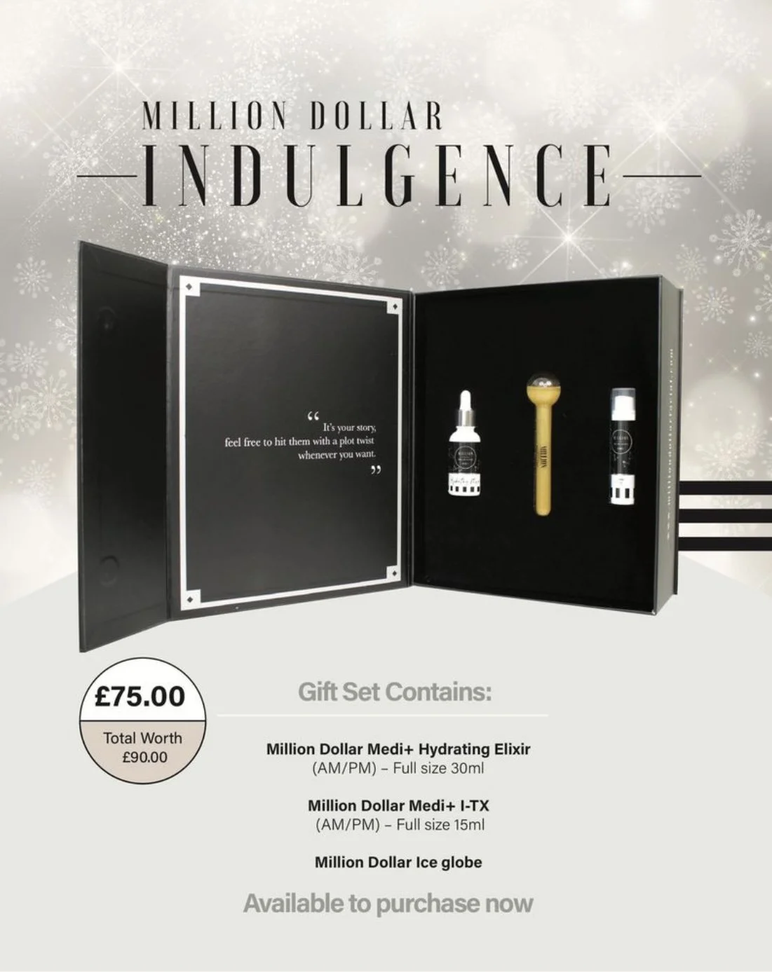 Shop Categories: All SKINCARE BUNDLES CHRISTMAS CLEANSE & EXFOLIATE TARGET & TREAT SERUMS MOISTURSE & PROTECT NIGHT TREATMENTS NUTRACEUTICALS Shop All | SKINCARE BUNDLES | CHRISTMAS | CLEANSE & EXFOLIATE | TARGET & TREAT SERUMS | MOISTURSE & PROTECT | NIGHT TREATMENTS | NUTRACEUTICALS | Menopausal skin from £110.00 Select Option Cleanse/treat/protect Enhanced bundle Add To Cart Added! Sensitive skin from £106.00 Select Option Cleanse/treat/protect Enhanced bundle Add To Cart Added! Pigmentation bundle from £113.00 Select Option Cleanse/treat/protect Enhanced bundle Add To Cart Added! Oily & congested from £110.00 Select Option Cleanse/treat/protect Enhanced bundle Add To Cart Added! Anti aging bundle from £111.00 Select Option Cleanse/treat/protect Enhanced bundle Add To Cart Added! Dry & dehydrated from £90.00 Select Option Cleanse/treat/protect Enhanced bundle Add To Cart Added! Acne scarring/scarring from £98.00 Select Option Clense/treat/protect Enhanced bundle Add To Cart Added! Million dollar Orb Christmas collection £180.00 Add To Cart Added! Million dollar Aura christmas collection £120.00 Add To Cart Added! Million dollar luxury collection £99.00 Add To Cart Added! Million dollar indulgence box £75.00 Sold out Sold Out Added! Million dollar eye collection £99.00 Add To Cart Added! Million dollar glow collection £140.00 Add To Cart Added! Million dollar christmas cracker £20.00 Add To Cart Added! Medi+ Radiate 10/20 from £35.00 Select Option Radiate 10 Radiate 20 Add To Cart Added! Medi+ Niacinamist £42.00 Add To Cart Added! Medi+ Hydrating elixir £32.00 Add To Cart Added! Medi+ Hydro serum £42.00 Add To Cart Added! Medi+ HA4C £45.00 Add To Cart Added! Medi+ Sleep tight £42.00 Add To Cart Added! Medi+ Hyper erase £45.00 Add To Cart Added! Medi+ Retinight £42.00 Add To Cart Added! Medi+ H2O tanning drops £20.00 Add To Cart Added! Medi+ I-Tx eye serum £45.00 Add To Cart Added! Medi+ Hydro veil £40.00 Add To Cart Added! Medi+ Replenish £32.00 Add To Cart Added! Medi+ Shield 50 £40.00 Add To Cart Added! Medi+ Balance £22.00 Add To Cart Added! Top to toe tonic £32.00 Add To Cart Added! Regenerate £32.00 Add To Cart Added! Firmlift £32.00 Buy Added! Medi+ Glyco wash £32.00 Add To Cart Added! Medi+ Remove £30.00 Add To Cart Added! Medi+ Dermacleanse £30.00 Add To Cart Added! Medi+ Nourishing balm £32.00 Add To Cart Added! Medi+ Refine Peel Pads £45.00 Add To Cart Added! Exfoliating scrub £32.00 Add To Cart Added! Medi+ SOS £48.00 Add To Cart Added!